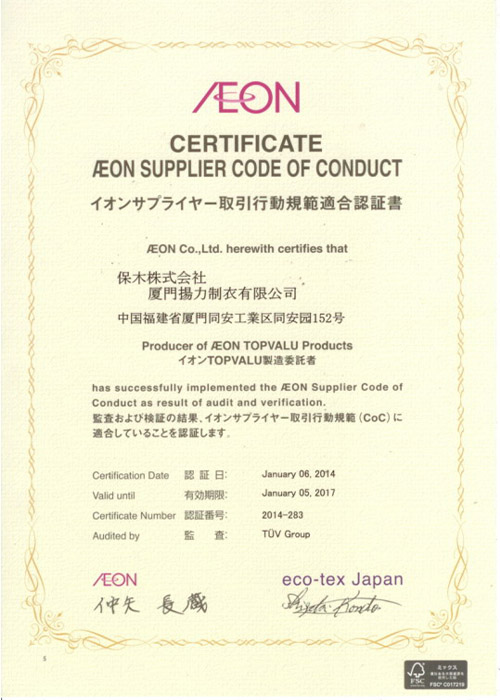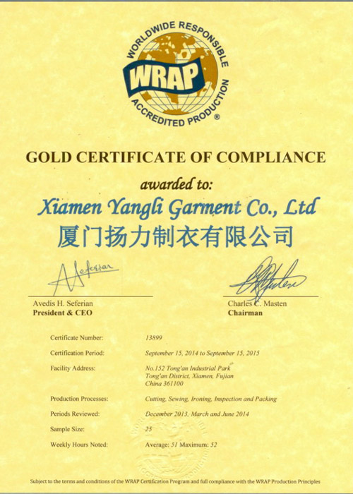 揚力製衣専門は各種下著、パンツ、ブラジャー、ヨガ服、衝突防止運動服などのアパレルのOEMとODM加工に従事し、年間生産量は500萬枚を超え、製品は日本と歐米諸國に売れている。